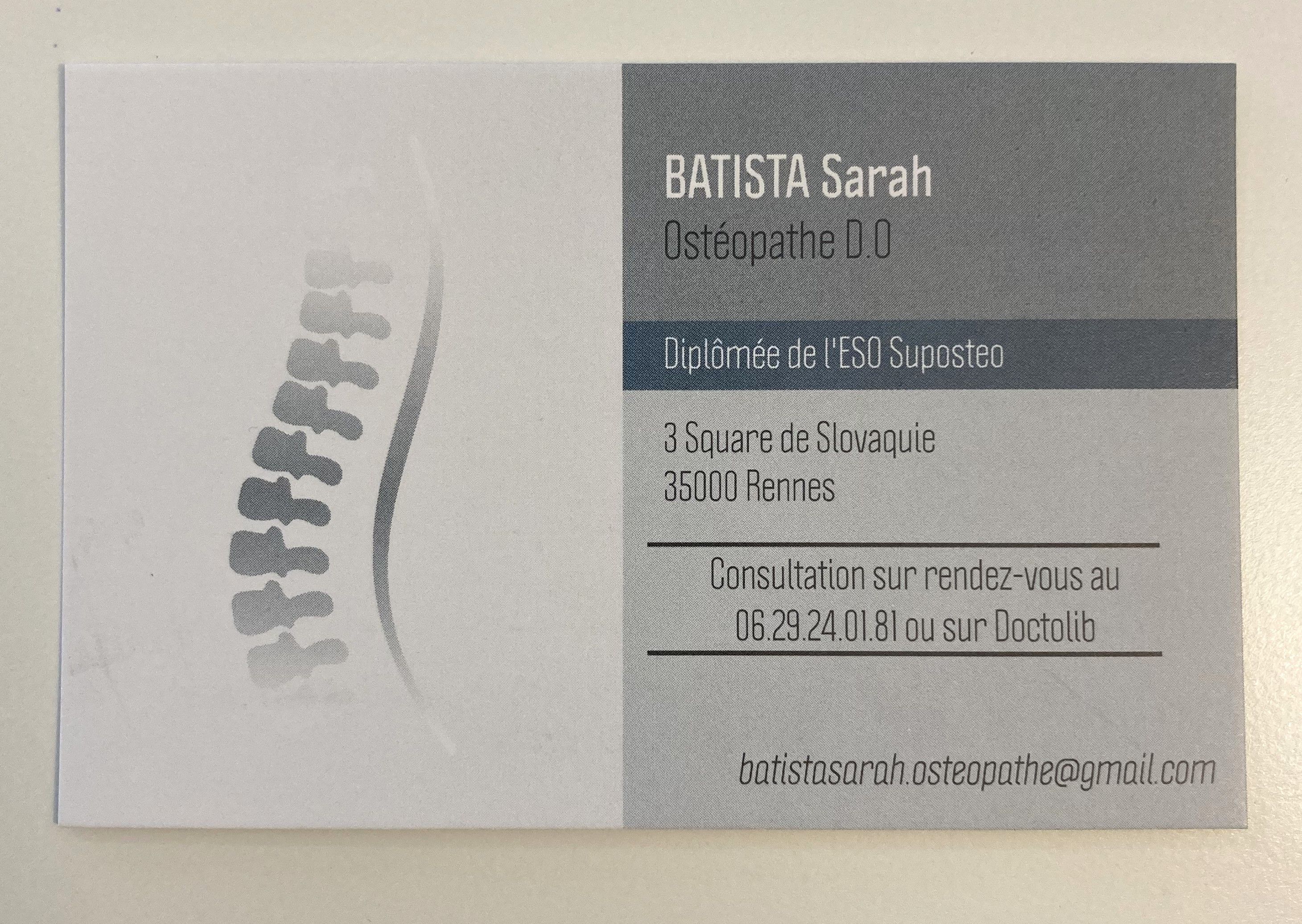Sarah BATISTA Ostéopathe est situé 3 Square de Slovaquie, 35200 Rennes, France.